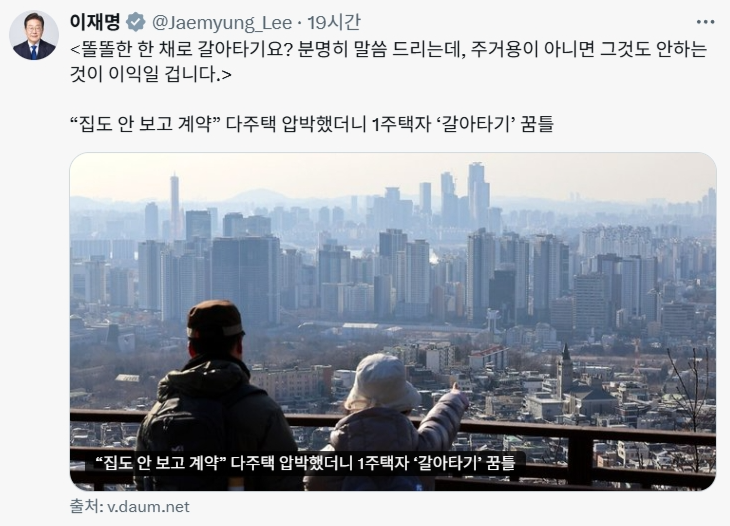 2. 매일경제: 이 대통령 “똘똘한 한 채? 주거용 아니면 안 하는 게 이익”
